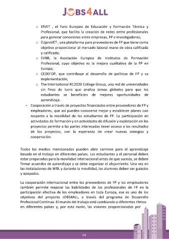 La cooperación internacional entre los proveedores de FP y los empleadores
